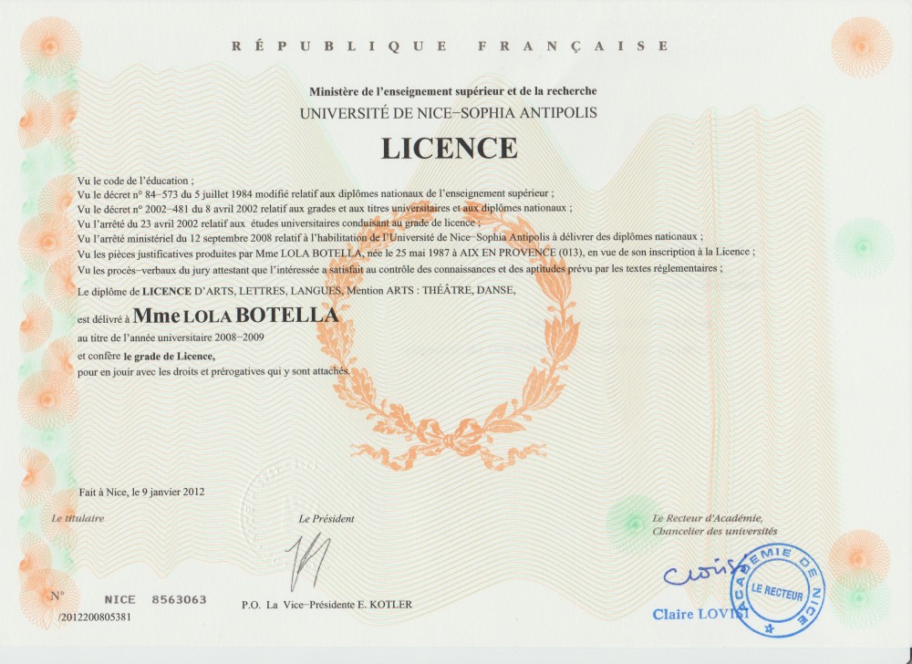 En revanche, le programme proposé par les universités françaises est proche de celui du D.E espagnol. Une chose importante à préciser: Peu d'universités en France proposent ce parcours et celle de Nice en fait partie! Comme pour tout autre type d'études, vous avez la possibilité de préparer une simple licence sur 3 ans, ou alors de pousser votre réflexion sur l'enseignement de la danse autour d'un Master en 5 ans, voir d'aller jusqu'à un Doctorat (8 ans).