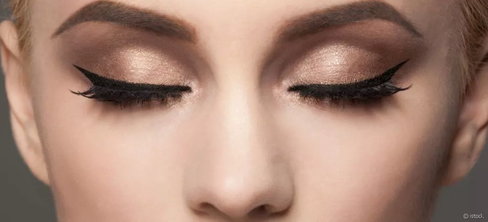 => Un trait fin noir du milieu de la paupière, à ras des cils, jusqu'au coin externe en remontant vers le sourcil. Un deuxième trait partant de dessous l'oeil est possible à partir du niveau intermédiaire.