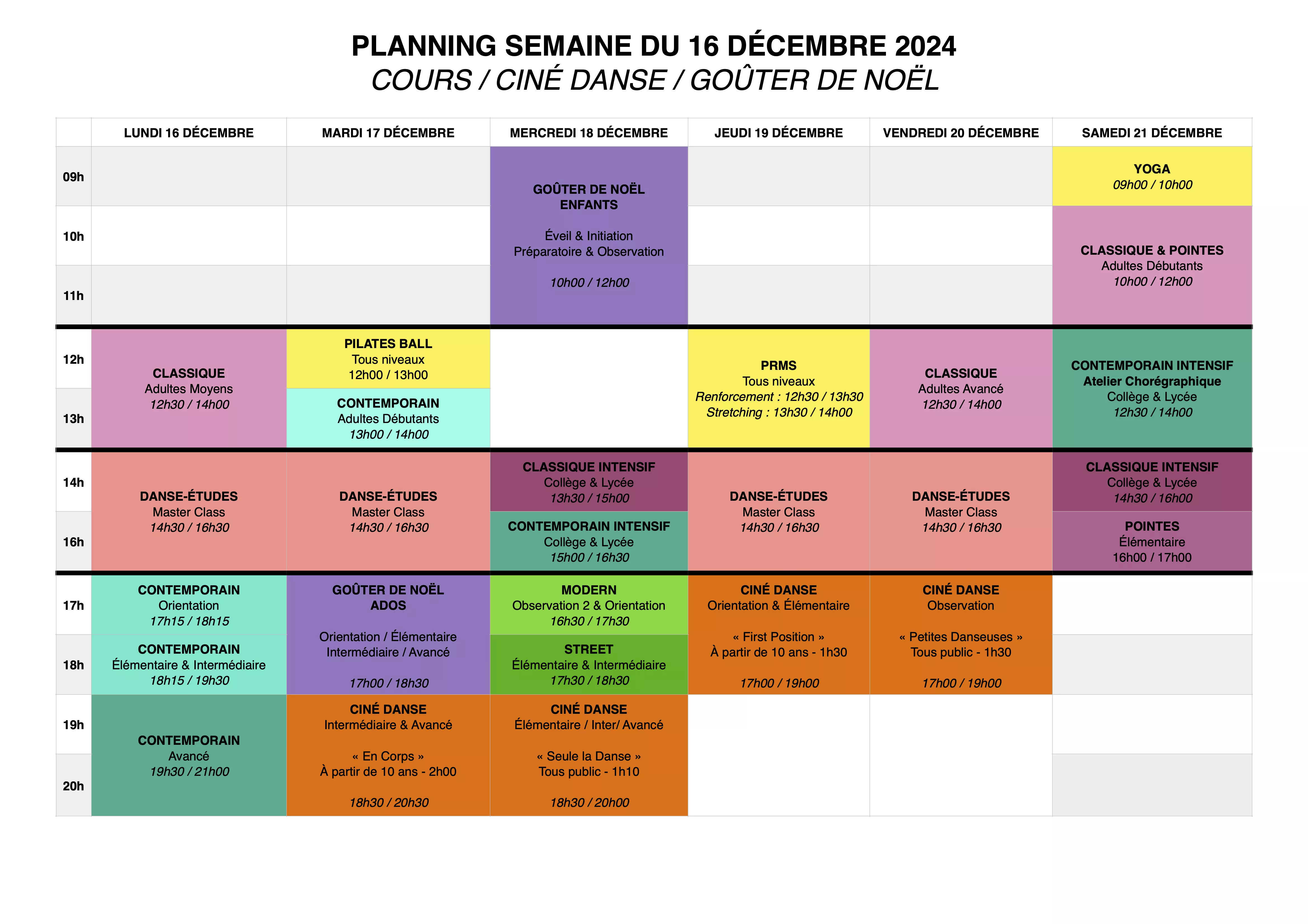 Merci de bien tenir compte de ce planning car certains groupes ont été regroupés pour l'occasion !
