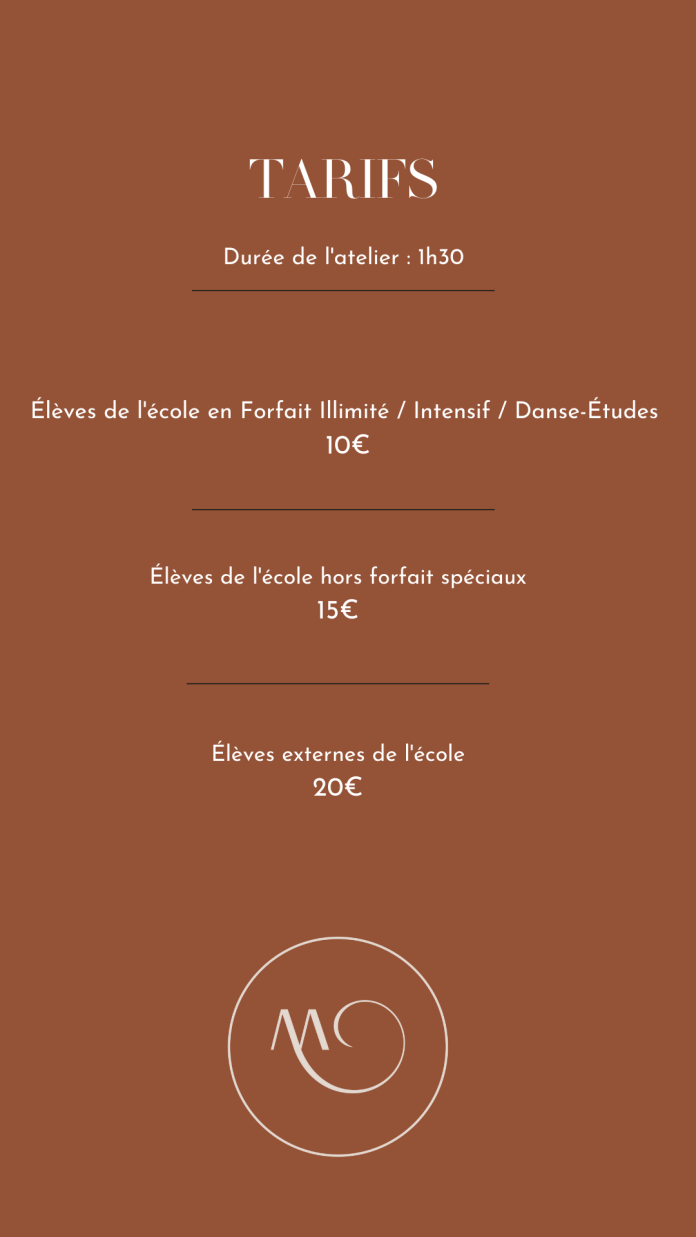 Notre professeur de contemporain, Sophie Raynaud, vous proposera également des ateliers "Apro-Danse", où les danseurs découvriront l'improvisation guidée, pendant que les parents pourront se retrouver et se détendre autour d'un apéro !