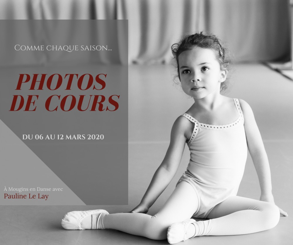 Comme chaque saison, l’école a le plaisir de recevoir une photographe professionnelle qui interviendra dans les cours afin de proposer des photos de danse de vos enfants en pleine action ! Depuis 4 ans, Pauline Le Lay intervient dans nos cours et couvre tous nos événements... À vos agendas! Merci de nous prévenir de toute absence.