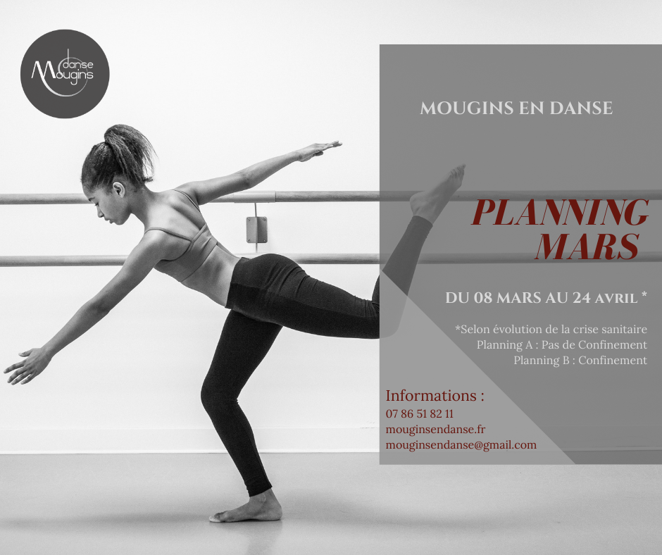Suite à la mise en place du confinement le week-end, nous avons dû anticiper et réorganiser le planning des cours au cas où celui-ci serait encore maintenu les prochains week-end. Aussi, avec l'équipe, nous avons fait en sorte que tous les élèves aient un cours de danse en semaine, en dehors du couvre feu encore en vigueur. Bien évidemment, il faudra se référer au planning adéquat selon le maintien ou non du confinement le week-end :