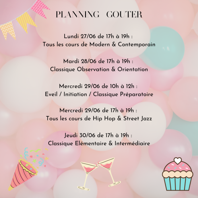 Attention : Le planning de cette semaine du 27 Juin remplace celui des cours habituels. Sont maintenus uniquement les cours de Danses-Etudes et Adultes (Classique, Pilates, PRMS)