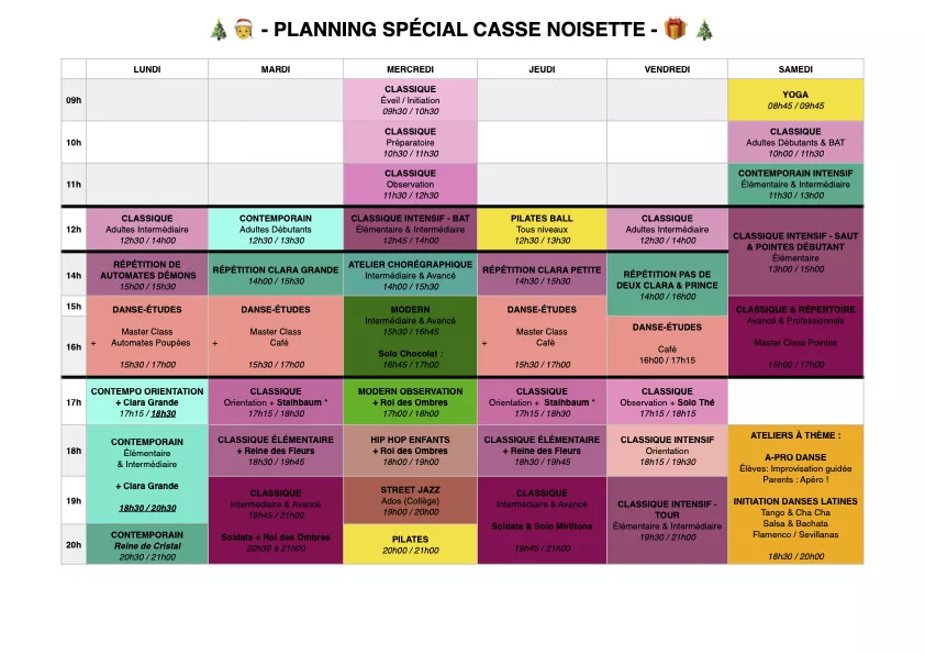 PLANNING SPÉCIAL "CASSE NOISETTE"