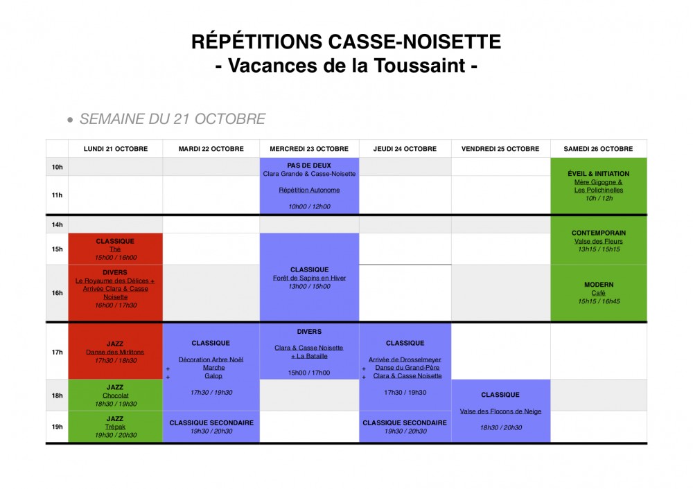 - Planning de la Toussaint