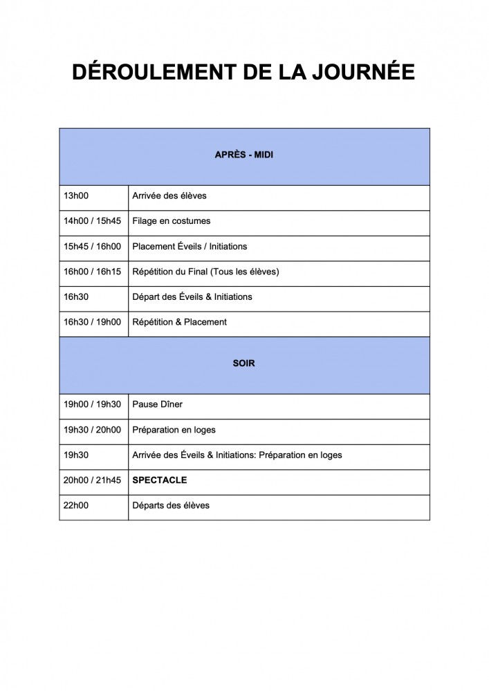Nous vous rappelons que les danseurs doivent arriver à la répétition en tenue de cours réglementaire, coiffé, sans maquillage.