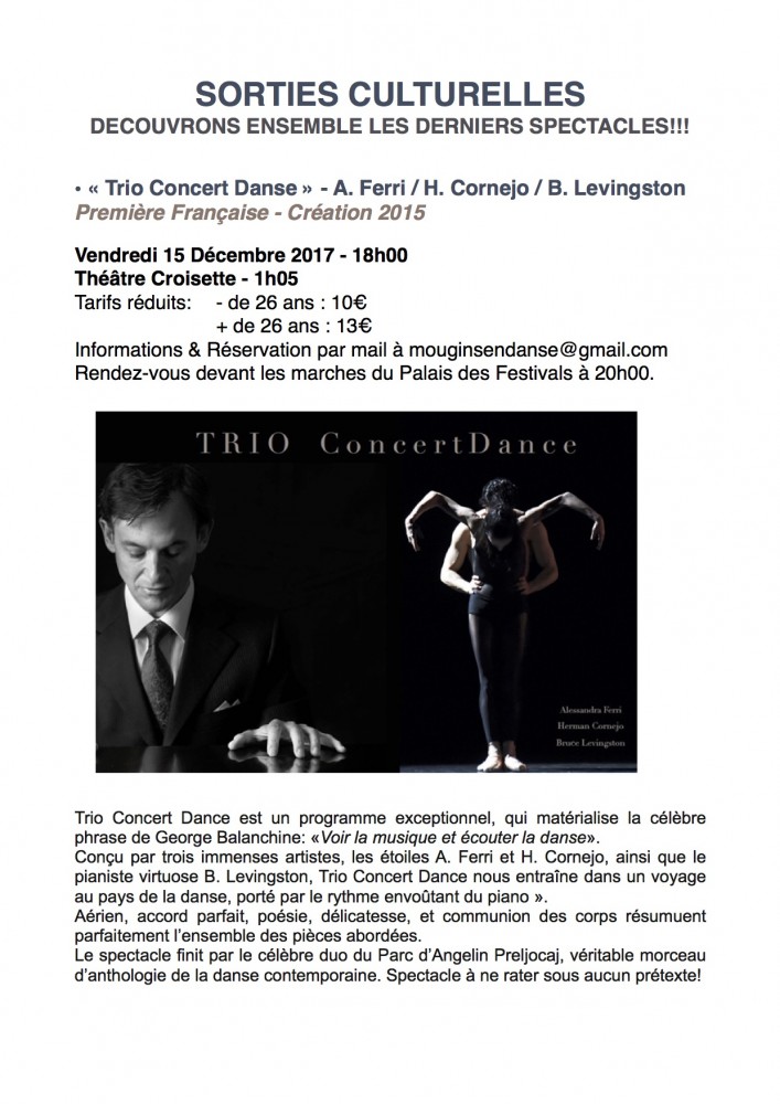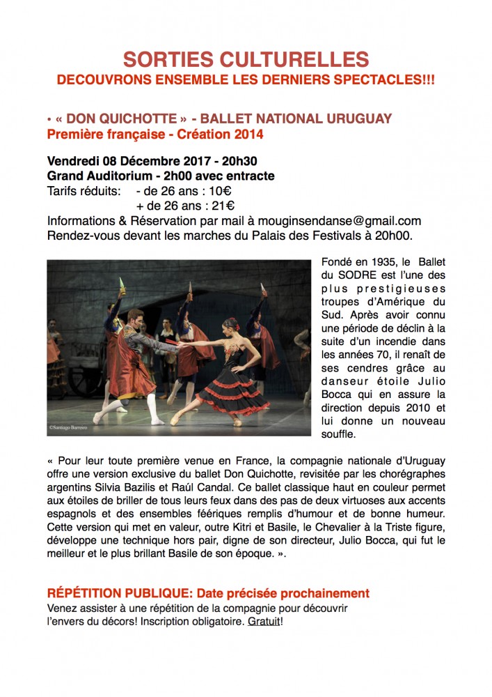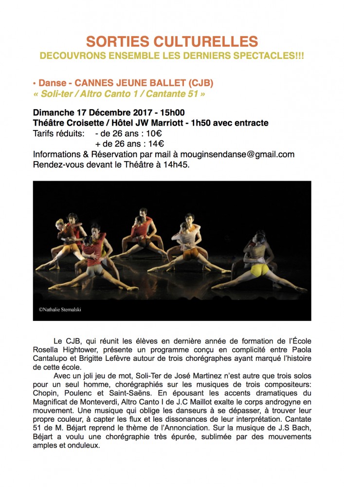 Votre école Mougins en Danse est très heureuse de vous annoncer qu'elle s'est unie au Palais des Festivals de Cannes dans le cadre de la Biennale du Festival de Danse afin de proposer aux élèves une sélection de spectacles sur la saison.
