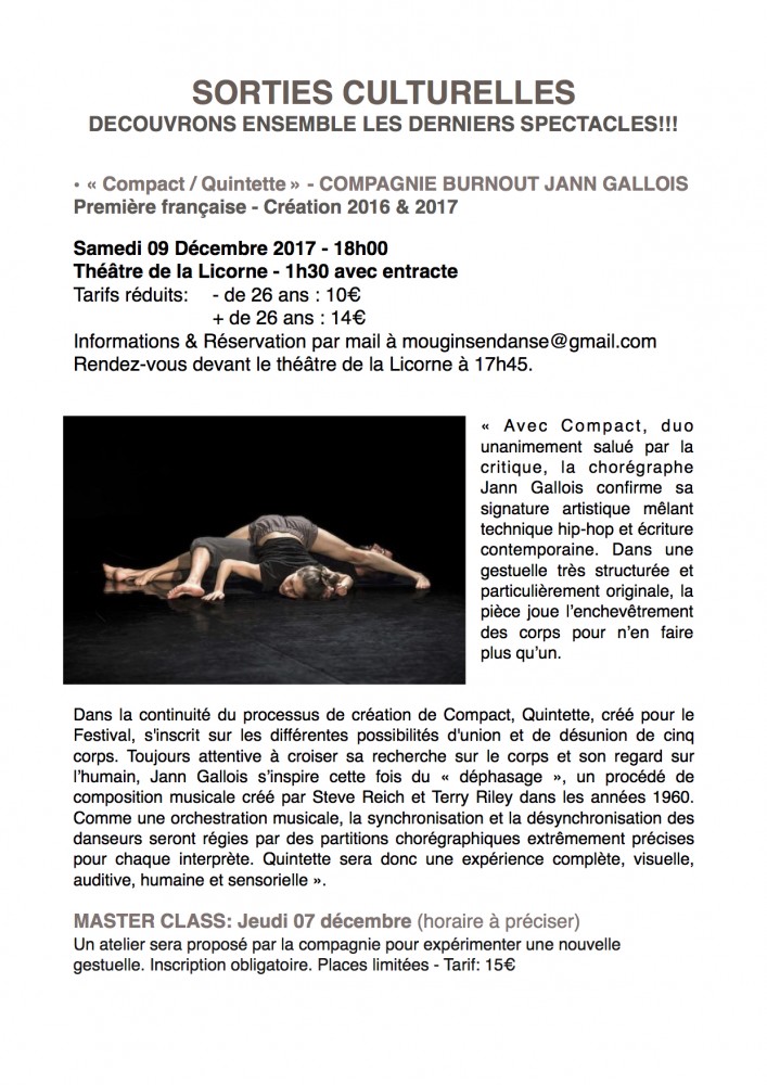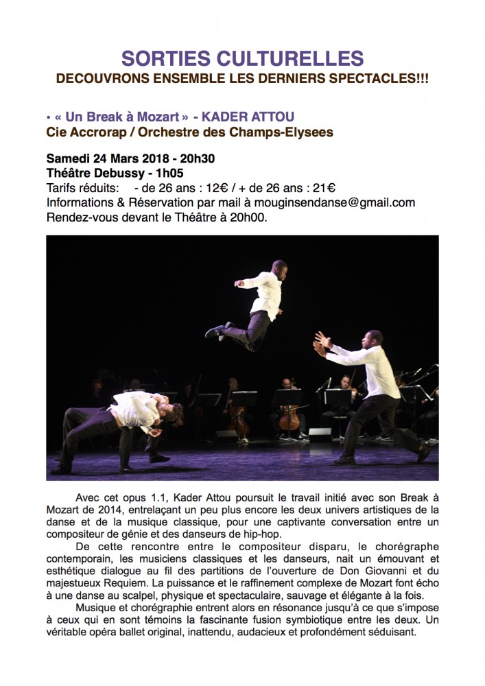 Vous trouverez ci dessous les fiches descriptives des spectacles que nous vous avons sélectionnés: Du Classique au Hip Hop en passant par la danse Moderne et Contemporaine, tous les styles sont içi représentés afin d'ouvrir votre regard sur la Danse au sens large.