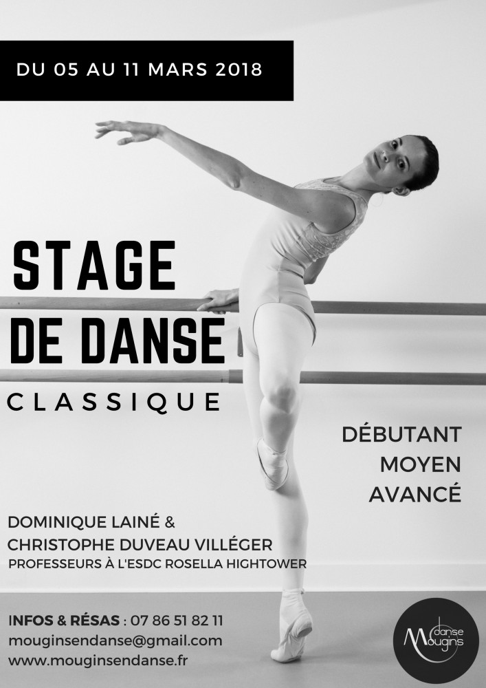 Que vous soyez élève de l'école où que vous veniez d'autres centres de formation, venez travailler votre technique avec des professeurs de l'ESDC Rosella Hightower pendant les vacances scolaires d'hiver du 05 au 11 mars 2018. Ce stage de danse classique est destiné aux Enfants / Ados / Adultes de niveaux Débutant / Moyen / Avancé.