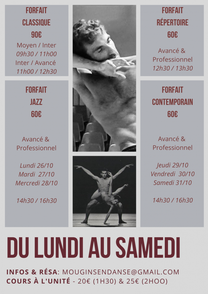 Envoyez un chèque à l'ordre de Mougins en Danse (Josiane BESSY - 1 Rond Point Minangoy - 06250 MOUGINS)
