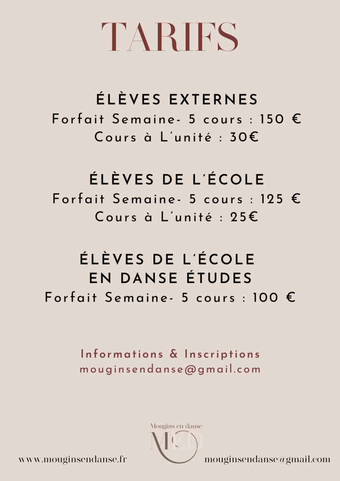 Envoyez un chèque à l'ordre de Mougins en Danse (23 rue du Cherche Midi 06250 MOUGINS) ou règlez par virement bancaire ou directement sur place en espèces lors de votre premier Master Class