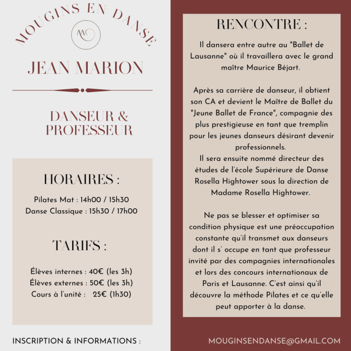 Infos & Résa par mail : mouginsendanse@gmail.com